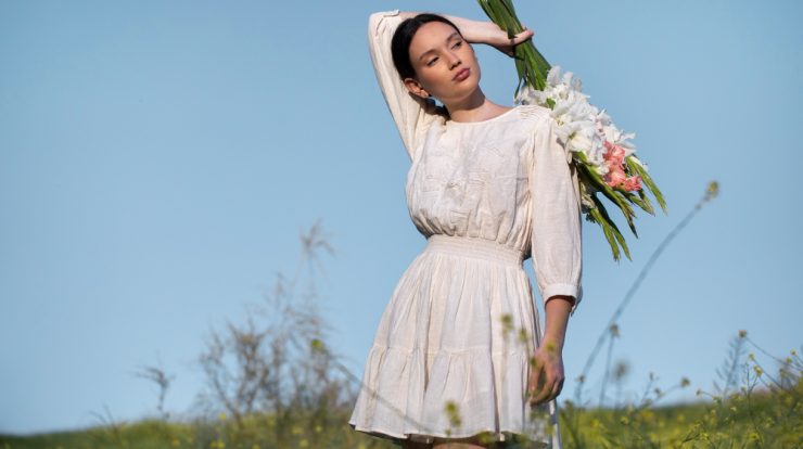 O rochie albă simplă, dar cu mâneci voluminoase, este o alegere rafinată pentru evenimente speciale de vară. Poate fi purtată atât cu sandale aurii sau argintii, cât și cu pantofi nude pentru un efect elegant și fresh. Este o piesă care nu are nevoie de prea multe accesorii, pentru că detaliul mânecilor este suficient de spectaculos.